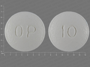 This medication is a White Round 7 mm, Extended release tablet with imprint "OP;10". It is manufactured by Teva Pharmaceuticals USA Inc. For details please contact your physician.