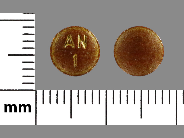 This medication is a Brown Round 10 mm, Tablet with imprint "AN;1". It contains Phenazopyridine hydrochloride 100 mg; of Phenazopyridine hydrochloride[phenazopyridine];. It is manufactured by American Health Packaging. For details please contact your physician.