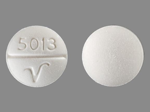 This medication is a White Round 8 mm, Tablet with imprint "5013;V". It contains Phenobarbital 64.8 mg; of Phenobarbital[phenobarbital];. It is manufactured by Par Pharmaceutical. For details please contact your physician.