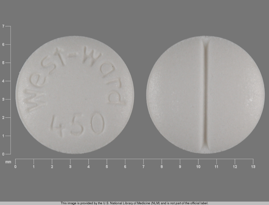 This medication is a White Round 6 mm, Tablet with imprint "West;ward;450". It contains Phenobarbital 30 mg; of Phenobarbital[phenobarbital];. It is manufactured by Hikma Pharmaceuticals USA Inc.. For details please contact your physician.