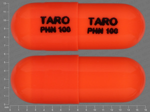This medication is an Orange Capsule 16 mm, Extended release capsule with imprint "TARO;PHN;100;TARO;PHN;100". It contains 100 mg of Phenytoin sodium 100 mg. It is manufactured by Taro Pharmaceuticals U.S.A., Inc.. For details please contact your physician.