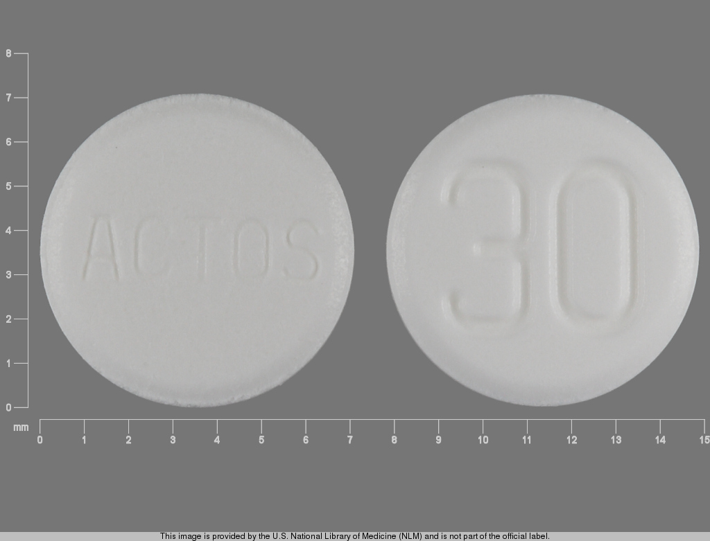 - ActosPIOGLITAZONE HYDROCHLORIDE 30 mg;WHITE • ROUND
