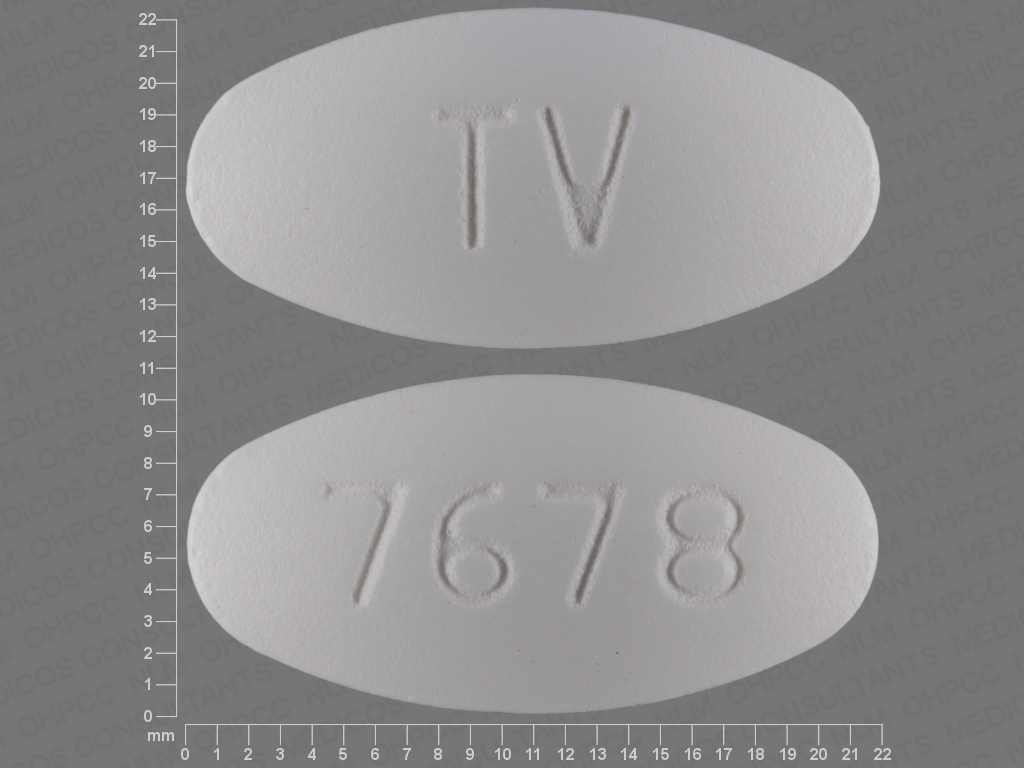 This medication is a White Oval 22 mm, Film coated tablet with imprint "TV;7678". It contains Pioglitazone hydrochloride 15 mg;metformin hydrochloride 850 mg; of Pioglitazone hydrochloride[pioglitazone];metformin hydrochloride[metformin];. It is manufactured by Teva Pharmaceuticals USA, Inc.. For details please contact your physician.