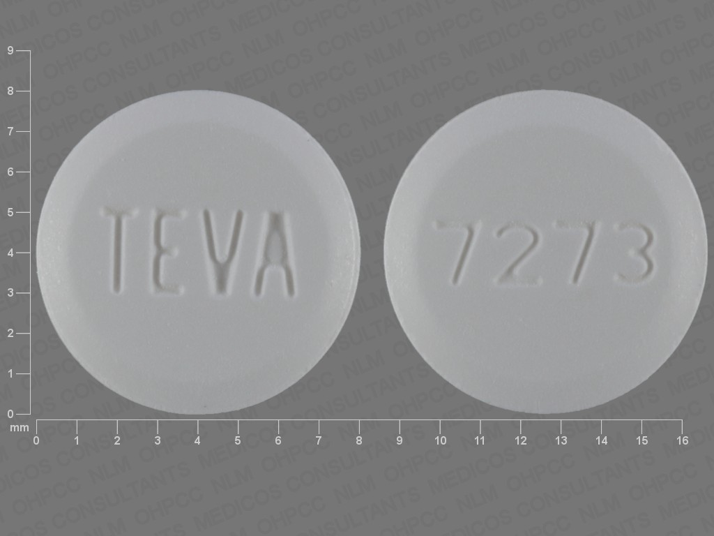 This medication is a White Round 8 mm, Tablet with imprint "TEVA;7273". It contains Pioglitazone hydrochloride 45 mg; of Pioglitazone hydrochloride[pioglitazone];. This belongs to the Peroxisome proliferator receptor alpha agonist pharmacologic class. It is manufactured by Teva Pharmaceuticals USA, Inc.. For details please contact your physician.