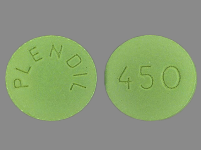 This medication is a Green Round 11 mm, Extended release tablet with imprint "450;PLENDIL". It contains Felodipine 2.5 mg; of Felodipine[felodipine];. It is manufactured by AstraZeneca LP. For details please contact your physician.