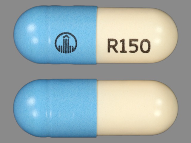 This medication is a Blue;white Capsule 22 mm, Capsule with imprint "R150". It contains Dabigatran etexilate mesylate 150 mg; of Dabigatran etexilate mesylate[dabigatran];. It is manufactured by Boehringer Ingelheim Pharmaceuticals Inc.. For details please contact your physician.
