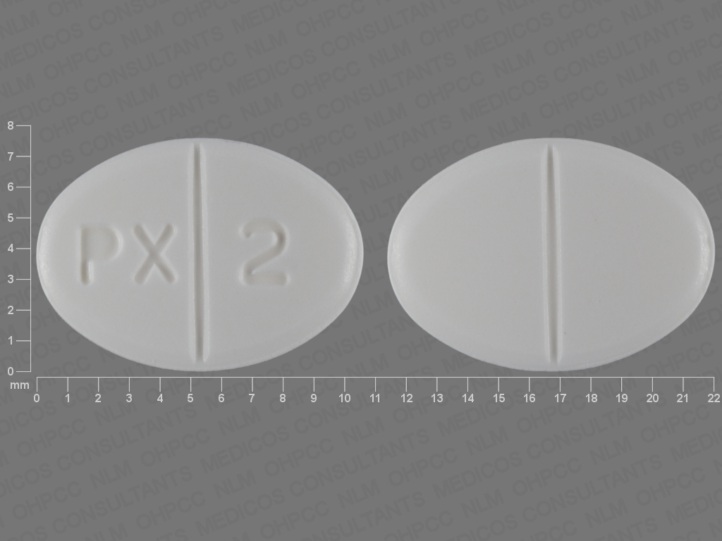 This medication is a White Oval 11 mm, Tablet with imprint "PX;2". It is manufactured by Glenmark Generics Inc., USA. For details please contact your physician.