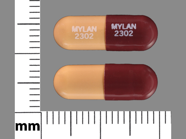 This medication is a Brown;brown Capsule 18 mm, Capsule with imprint "MYLAN;2302". It contains Prazosin hydrochloride 2 mg; of Prazosin hydrochloride[prazosin];. This belongs to the Alpha-adrenergic blocker pharmacologic class. It is manufactured by Mylan Institutional Inc.. For details please contact your physician.