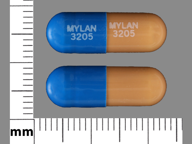 This medication is a Blue;brown Capsule 21 mm, Capsule with imprint "MYLAN;3205". It contains Prazosin hydrochloride 5 mg; of Prazosin hydrochloride[prazosin];. This belongs to the Alpha-adrenergic blocker pharmacologic class. It is manufactured by Mylan Institutional Inc.. For details please contact your physician.