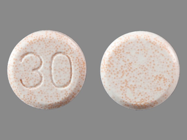 This medication is a White Round 12 mm, Orally disintegrating delayed release tablet with imprint "30". It contains Lansoprazole 30 mg;phenylalanine 5.1 mg; of Lansoprazole[lansoprazole];phenylalanine[];. It is manufactured by Takeda Pharmaceuticals America, Inc.. For details please contact your physician.