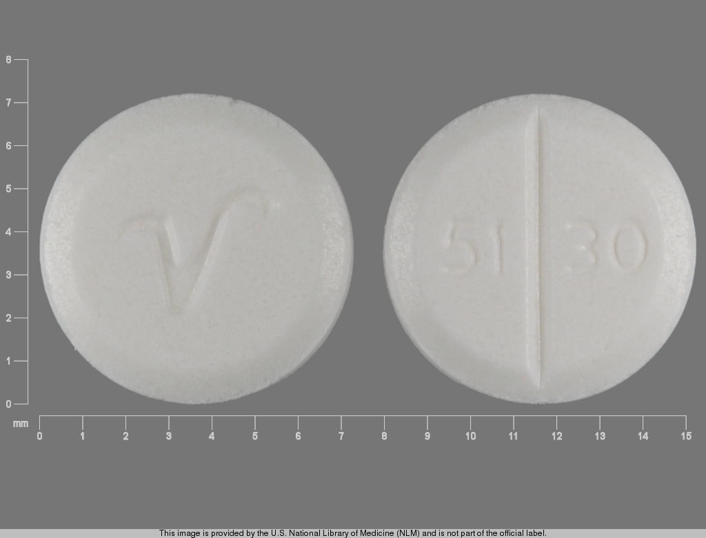 This medication is a White Round 7 mm, Tablet with imprint "5130;V". It contains Primidone 50 mg; of Primidone[primidone];. This belongs to the Anti-epileptic agent pharmacologic class. It is manufactured by Par Pharmaceutical. For details please contact your physician.