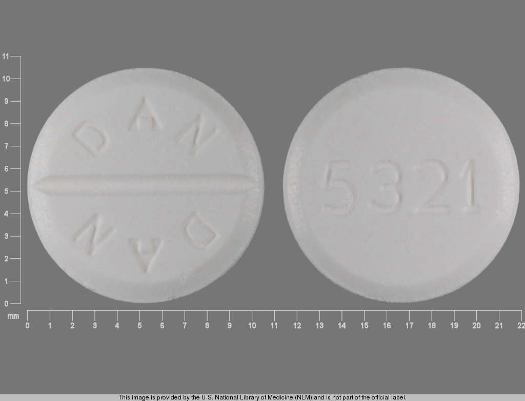 This medication is a White Round 10 mm, Tablet with imprint "DAN;DAN;5321". It contains Primidone 250 mg; of Primidone[primidone];. This belongs to the Anti-epileptic agent pharmacologic class. It is manufactured by Actavis Pharma, Inc.. For details please contact your physician.