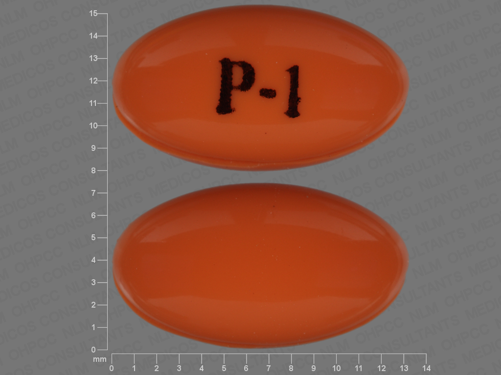 This medication is an Orange Oval 13 mm, Capsule with imprint "P;1". It is manufactured by Banner Pharmacaps Inc.. For details please contact your physician.