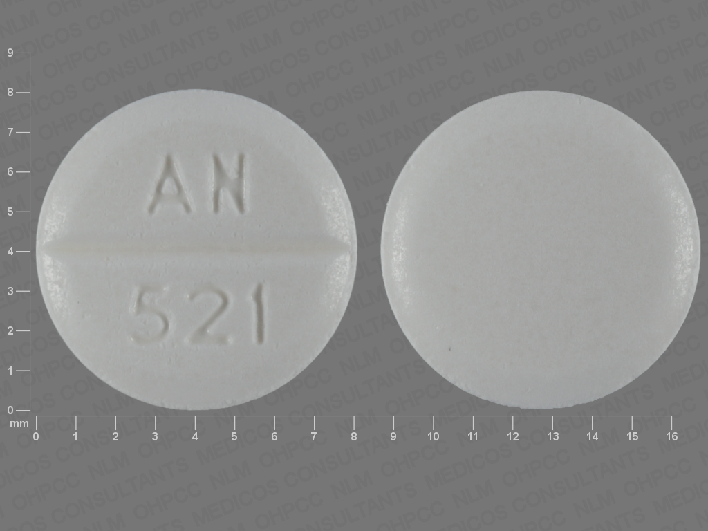 This medication is a White Round 8 mm, Tablet with imprint "AN;521". It is manufactured by Amneal Pharmaceuticals. For details please contact your physician.