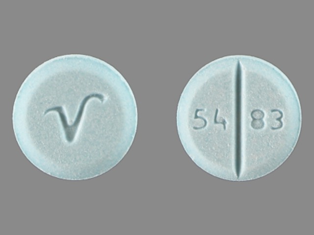 This medication is a Blue Round 7 mm, Tablet with imprint "54;83;V". It contains Propranolol hydrochloride 20 mg; of Propranolol hydrochloride[propranolol];. This belongs to the Beta-adrenergic blocker pharmacologic class. It is manufactured by Par Pharmaceutical. For details please contact your physician.