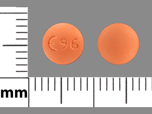 This medication is an Orange Round 6 mm, Film coated tablet with imprint "E96". It contains Protriptyline hydrochloride 5 mg; of Protriptyline hydrochloride[protriptyline];. This belongs to the Tricyclic antidepressant pharmacologic class. It is manufactured by Hi-Tech Pharmacal Co., Inc.. For details please contact your physician.