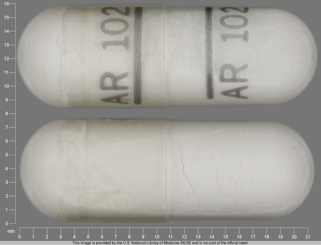 This medication is a White Capsule 22 mm, Capsule with imprint "AR;102". It contains Quinine sulfate 324 mg; of Quinine sulfate[quinine];. This belongs to the Antimalarial pharmacologic class. It is manufactured by AR Scientific Inc.. For details please contact your physician.