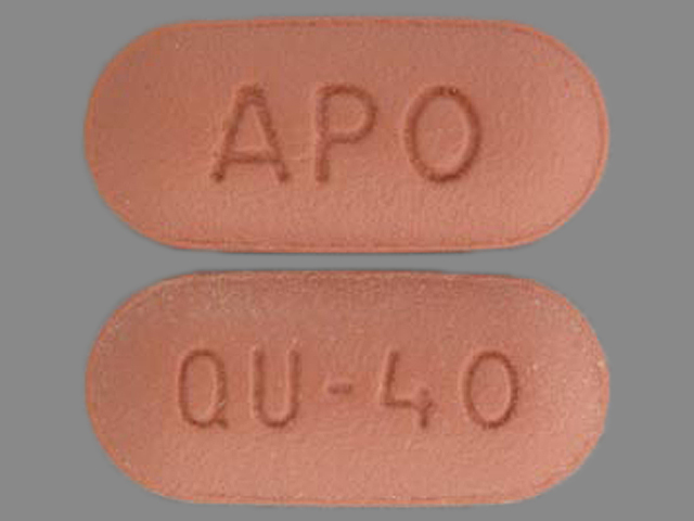 This medication is a Brown Oval 14 mm, Film coated tablet with imprint "APO;QU-40". This belongs to the Angiotensin converting enzyme inhibitor pharmacologic class. It is manufactured by Apotex Corp.. For details please contact your physician.