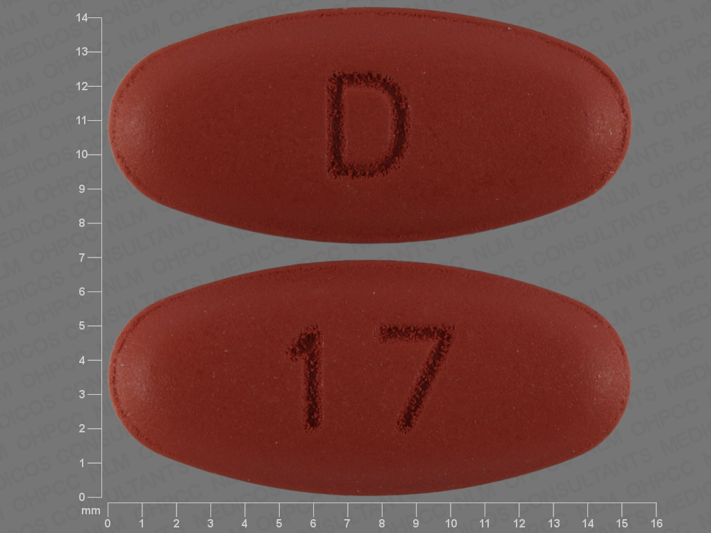 This medication is a Brown Oval 15 mm, Film coated tablet with imprint "D;17". It contains Quinapril hydrochloride 40 mg; of Quinapril hydrochloride[quinaprilat];. This belongs to the Angiotensin converting enzyme inhibitor pharmacologic class. It is manufactured by Aurobindo Pharma Limited. For details please contact your physician.