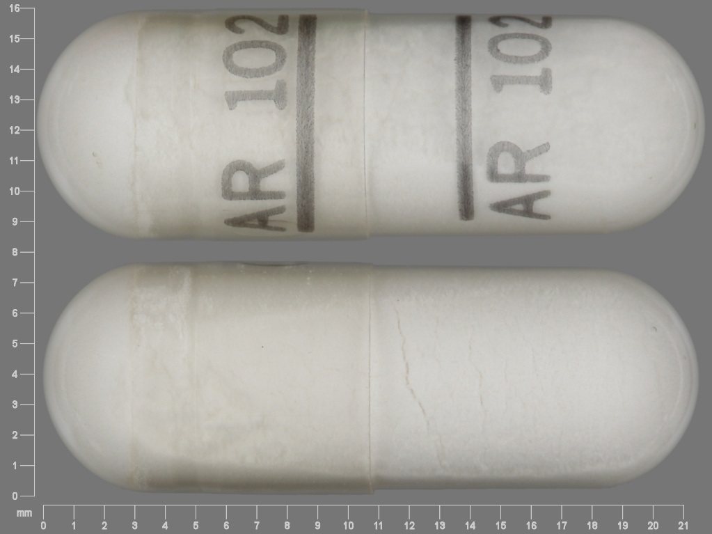 This medication is a White Capsule 22 mm, Capsule with imprint "AR;102". It contains Quinine sulfate 324 mg; of Quinine sulfate[quinine];. This belongs to the Antimalarial pharmacologic class. It is manufactured by American Health Packaging. For details please contact your physician.