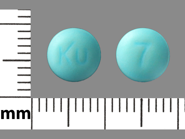 This medication is a Blue Round 7 mm, Delayed release tablet with imprint "KU;7". It contains Rabeprazole sodium 20 mg; of Rabeprazole sodium[rabeprazole];. This belongs to the Proton pump inhibitor pharmacologic class. It is manufactured by Lannett Company, Inc.. For details please contact your physician.