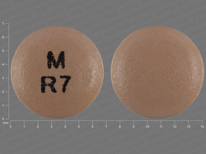 This medication is a Brown Round 7 mm, Delayed release tablet with imprint "M;R7". It is manufactured by Mylan Pharmaceuticals Inc.. For details please contact your physician.