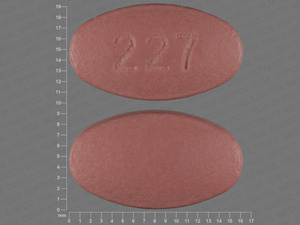 This medication is a Pink Oval 16 mm, Tablet with imprint "227". It contains 400 mg of Raltegravir potassium 400 mg. It is manufactured by Merck Sharp & Dohme Corp.. For details please contact your physician.
