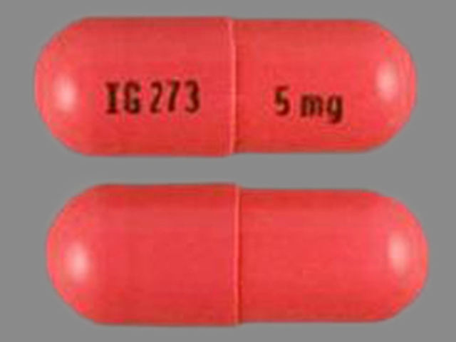 This medication is a Red Capsule 33 mm, Capsule with imprint "IG273;5mg". It contains Ramipril 5 mg; of Ramipril[ramipril];. This belongs to the Angiotensin converting enzyme inhibitor pharmacologic class. It is manufactured by Camber Pharmaceuticals. For details please contact your physician.