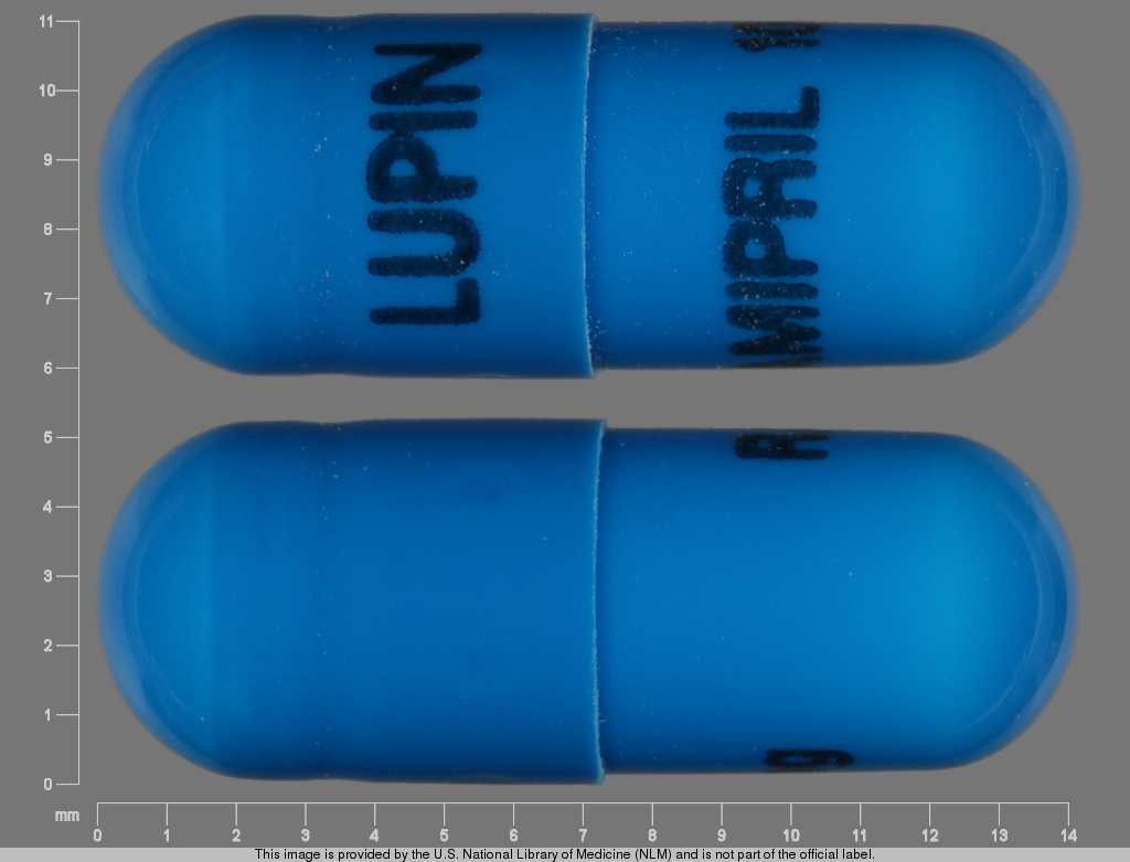 This medication is a Blue Capsule 14 mm, Capsule with imprint "LUPIN;RAMIPRIL;10;mg". It contains Ramipril 10 mg; of Ramipril[ramiprilat];. This belongs to the Angiotensin converting enzyme inhibitor pharmacologic class. It is manufactured by Lupin Pharmaceuticals, Inc.. For details please contact your physician.