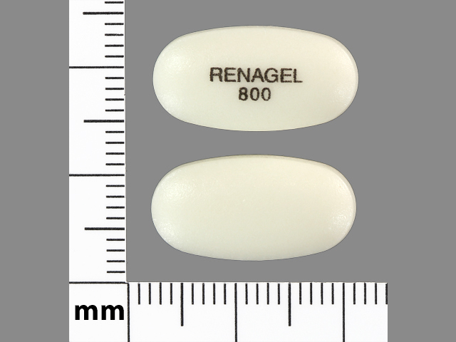 - RenagelSEVELAMER HYDROCHLORIDE 800 mg;WHITE • OVAL