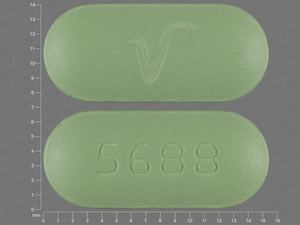 This medication is a Green Oval 15 mm, Tablet with imprint "5688;V". It contains 4 mg of Risperidone 4 mg. It is manufactured by Qualitest Pharmaceutical, Inc.. For details please contact your physician.