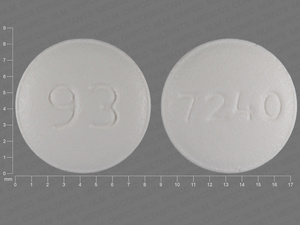 This medication is a White Round 8 mm, Tablet with imprint "93;7240". It contains 1 mg of Risperidone 1 mg. It is manufactured by Teva Pharmaceuticals USA Inc. For details please contact your physician.