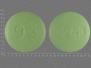 This medication is a Green Round 11 mm, Tablet with imprint "93;7243". It contains 4 mg of Risperidone 4 mg. It is manufactured by Teva Pharmaceuticals USA Inc. For details please contact your physician.