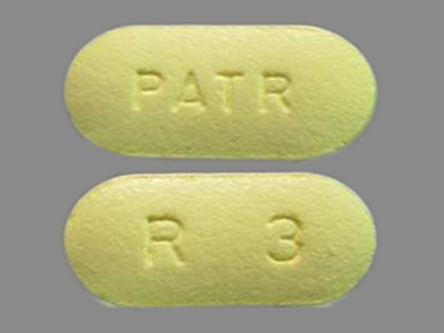 This medication is a Yellow Oval 14 mm, Tablet with imprint "R3;PATR". It contains Risperidone 3 mg; of Risperidone[risperidone];. This belongs to the Atypical antipsychotic pharmacologic class. It is manufactured by Janssen Pharmaceutical, Inc.. For details please contact your physician.