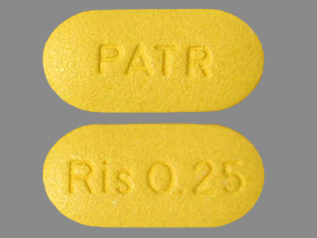 This medication is a Yellow Oval 8 mm, Tablet with imprint "Ris;0;25;PATR". It contains Risperidone 0.25 mg; of Risperidone[risperidone];. This belongs to the Atypical antipsychotic pharmacologic class. It is manufactured by Janssen Pharmaceutical, Inc.. For details please contact your physician.