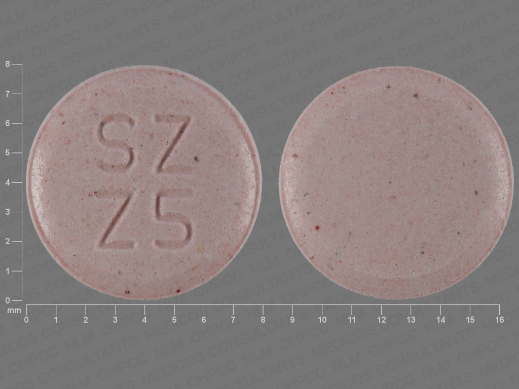 This medication is a Pink Round 8 mm, Unknown with imprint "SZ;Z5". It is manufactured by Sandoz Inc. For details please contact your physician.
