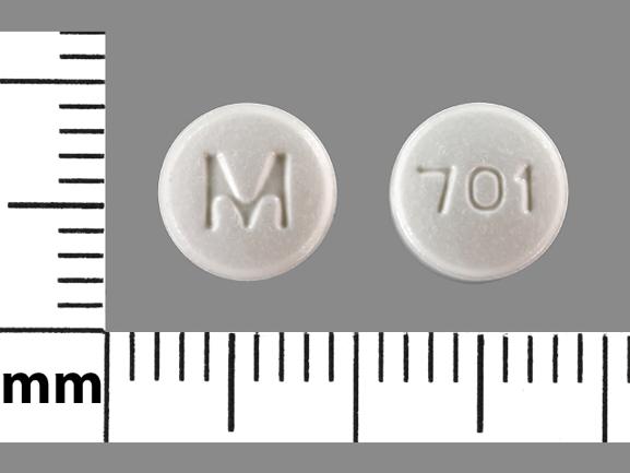 This medication is a White Round 7 mm, Orally disintegrating tablet with imprint "M;701". It contains Rizatriptan benzoate 5 mg; of Rizatriptan benzoate[rizatriptan];. This belongs to the Serotonin-1b and serotonin-1d receptor agonist pharmacologic class. It is manufactured by Mylan Pharmaceuticals Inc.. For details please contact your physician.