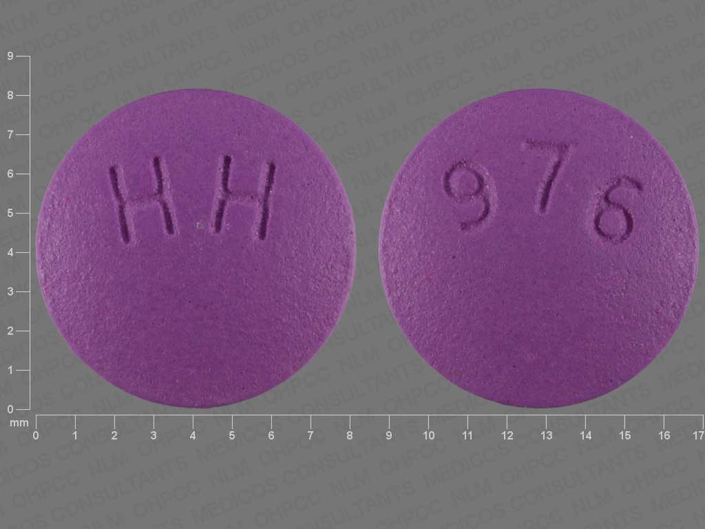 This medication is a Purple Round 8 mm, Tablet with imprint "976;HH". It is manufactured by Solco Healthecare US, LLC. For details please contact your physician.