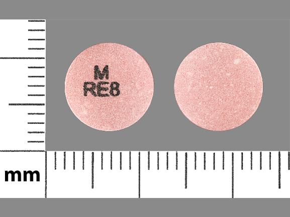 This medication is a Red Round 10 mm, Film coated extended release tablet with imprint "M;RE8". It contains Ropinirole hydrochloride 8 mg; of Ropinirole hydrochloride[ropinirole];. This belongs to the Nonergot dopamine agonist pharmacologic class. It is manufactured by Mylan Pharmaceuticals Inc.. For details please contact your physician.