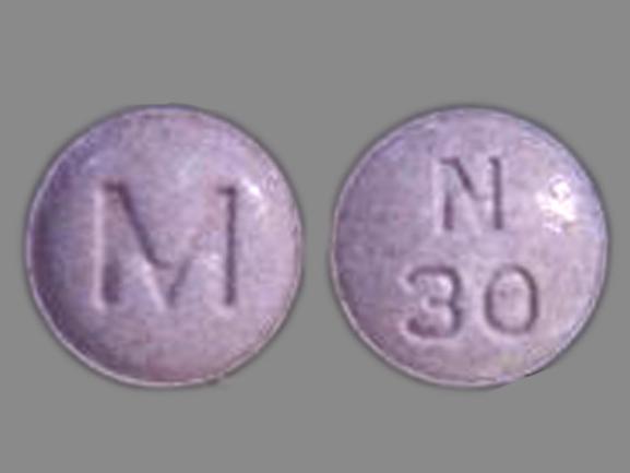This medication is a Purple Round 6 mm, Tablet with imprint "M;N;30". It contains Ropinirole hydrochloride 3 mg; of Ropinirole hydrochloride[ropinirole];. This belongs to the Nonergot dopamine agonist pharmacologic class. It is manufactured by Mylan Pharmaceuticals Inc.. For details please contact your physician.