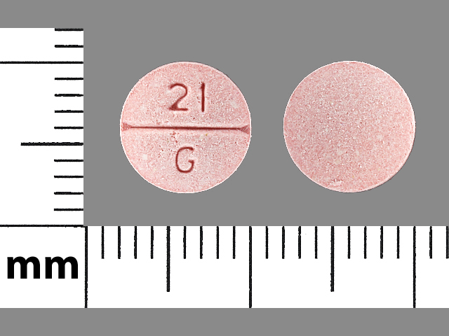 This medication is a Pink Round 8 mm, Chewable tablet with imprint "21G". It contains Meclizine hydrochloride 25 mg; of Meclizine hydrochloride[meclizine];. It is manufactured by RUGBY LABORATORIES. For details please contact your physician.