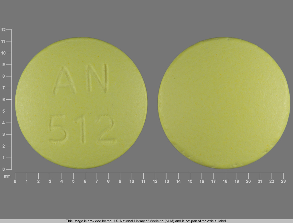 This medication is a Yellow Round 12 mm, Tablet with imprint "AN;512". It contains Salsalate 500 mg; of Salsalate[salsalate];. It is manufactured by Amneal Pharmaceuticals LLC. For details please contact your physician.