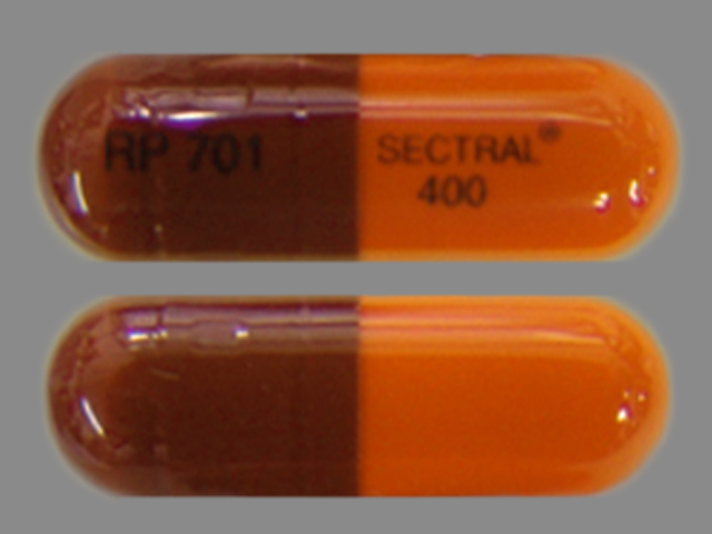 This medication is a Brown;orange Capsule 24 mm, Capsule with imprint "RP;700;Sectral;400". It contains Acebutolol hydrochloride 400 mg; of Acebutolol hydrochloride[acebutolol];. It is manufactured by Promius Pharma, LLC. For details please contact your physician.