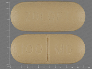 This medication is a Yellow Oval 13 mm, Tablet with imprint "ZOLOFT;100;mg". It contains 100 mg of Sertraline hydrochloride 100 mg. It is manufactured by Roerig. For details please contact your physician.