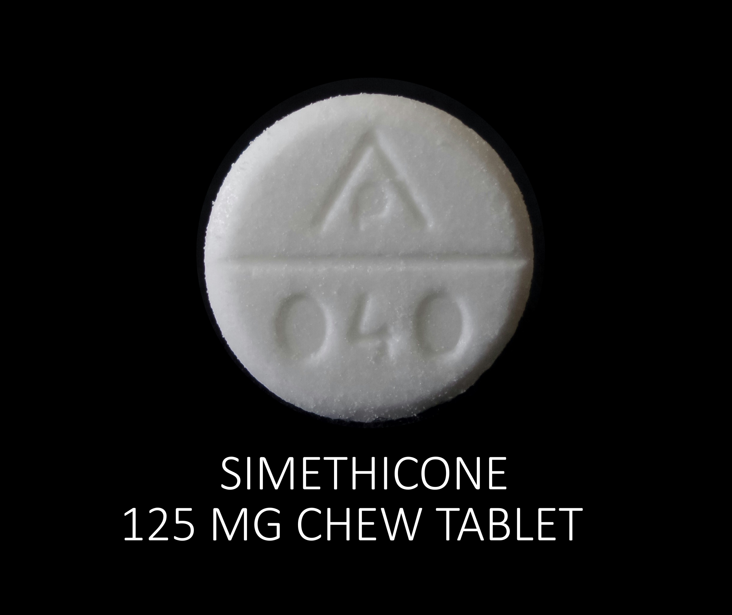 This medication is a White Round 16 mm, Chewable tablet with imprint "AP;040". It contains Dimethicone 125 mg; of Dimethicone[dimethicone];. It is manufactured by Reliable 1 Laboratires LLC. For details please contact your physician.