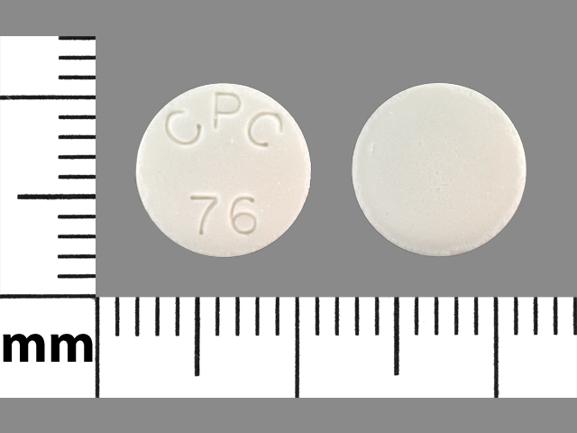 This medication is a White Round 10 mm, Tablet with imprint "CPC76". It contains Sodium bicarbonate 325 mg; of Sodium bicarbonate[sodium cation];. It is manufactured by Rugby Laboratories. For details please contact your physician.