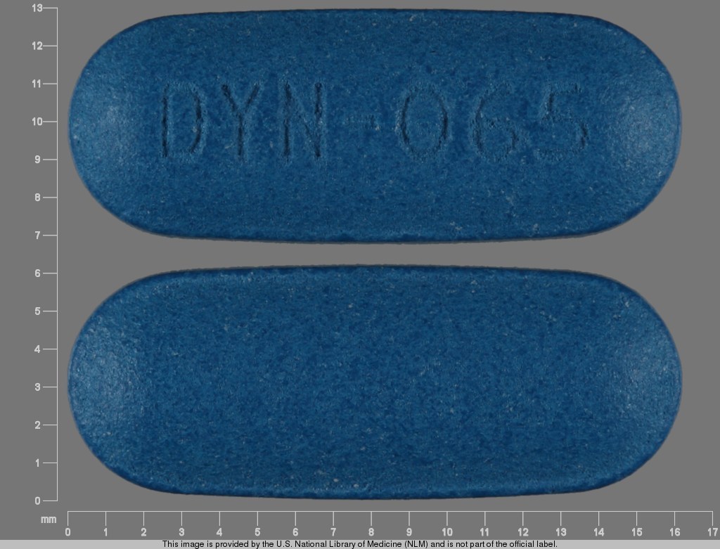 This medication is a Blue Oval 16 mm, Film coated extended release tablet with imprint "DYN;065". It contains Minocycline hydrochloride 65 mg; of Minocycline hydrochloride[minocycline];. This belongs to the Tetracycline-class drug pharmacologic class. It is manufactured by Valeant Pharmaceuticals North America LLC. For details please contact your physician.