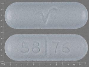 This medication is a Blue Oval 14 mm, Tablet with imprint "58;76;V". It contains 120 mg of Sotalol hydrochloride 120 mg. It is manufactured by Qualitest Pharmaceutical, Inc.. For details please contact your physician.