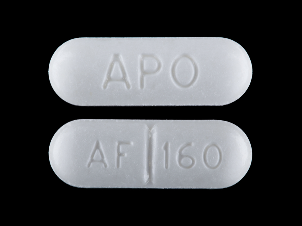This medication is a White Oval 13 mm, Tablet with imprint "APO;AF;160". It contains Sotalol hydrochloride 160 mg; of Sotalol hydrochloride[sotalol];. This belongs to the Antiarrhythmic pharmacologic class. It is manufactured by Apotex Corp.. For details please contact your physician.