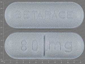 This medication is a Blue Oval 12 mm, Tablet with imprint "BETAPACE;80;mg". It contains 80 mg of Sotalol hydrochloride 80 mg. It is manufactured by Bayer HealthCare Pharmaceuticals Inc.. For details please contact your physician.